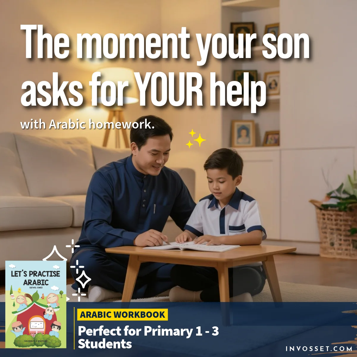 But here’s the problem most fathers face: You want to help. You really do. But you can’t read Arabic fluently. Or you can read it, but explaining grammatical concepts in a way a P2 child understands? That’s different.