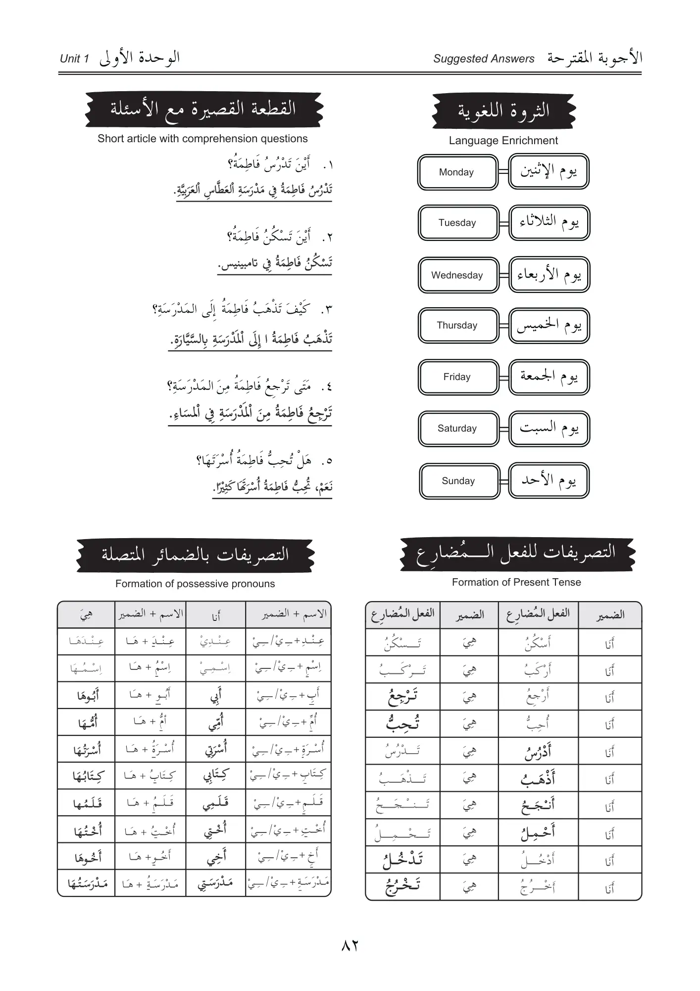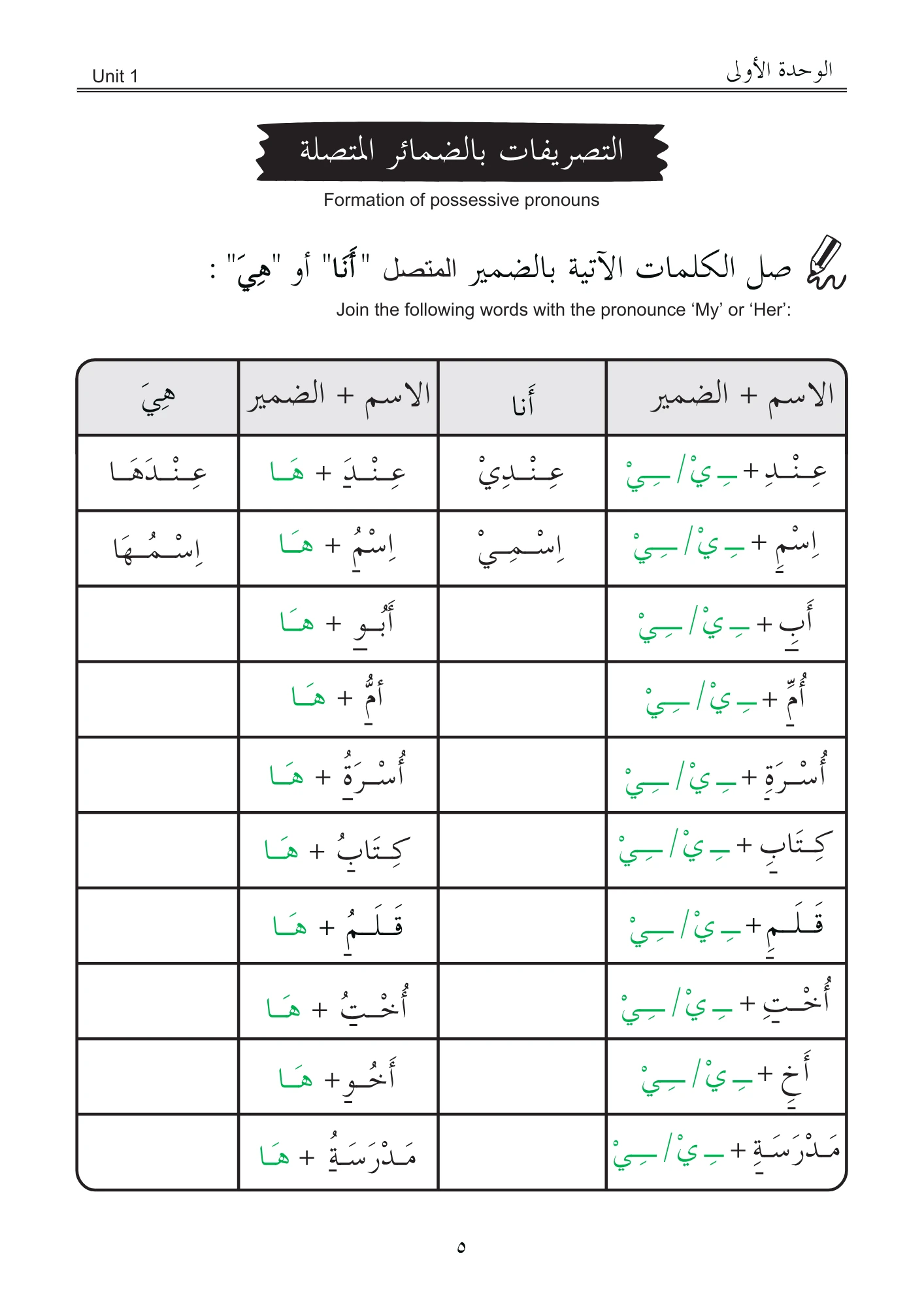 The exercises on Arabic grammar focus only on the single pronouns are carefully designed like stepping stones leading towards greater confidence and learning satisfaction.